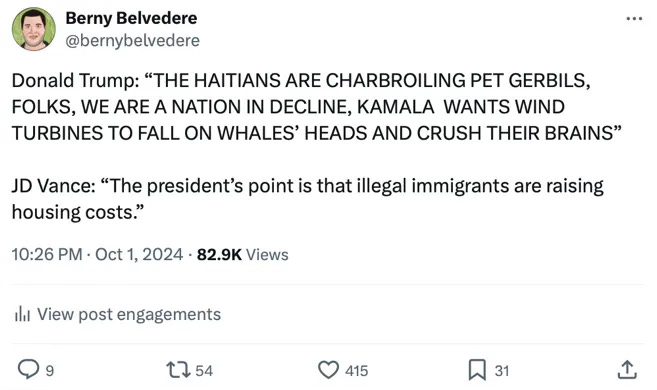 I dissected this in a piece for The UnPopulist after his VP debate performance in 2024 against Tim Walz: